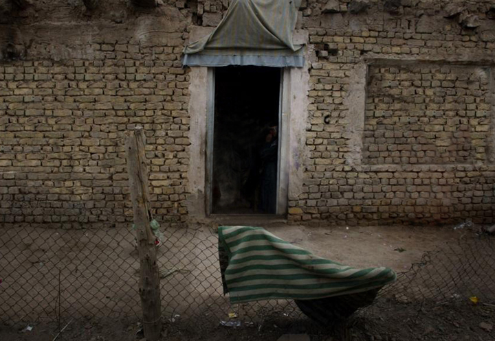 There’s a bed on the roof. The blanket that’s used as a door – I pull it over me when I sleep, like this.