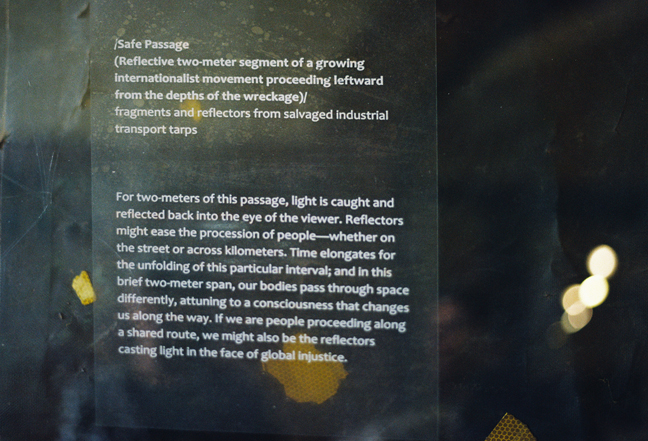 “For two meters of this passage, light is caught and reflected back into the eye of the viewer. Reflectors might ease the procession of people — whether on the street or across kilometers. Time elongates for the unfolding of this particular interval […]”