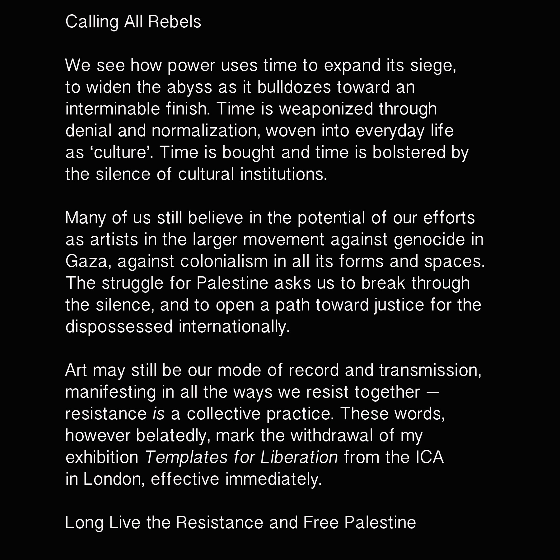 Speak, then, material witness, in the medium of rebellion!